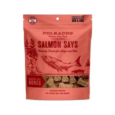 Your special pet deserves a treat that goes above and beyond – these bone-shaped treats, made from only three ingredients including delicious salmon, are an all-natural delight for your dog or cat!Net wt. 8 oz.Three ingredients – salmon, brown rice, potato flourHigh in omegasGreat for dogs and cats.