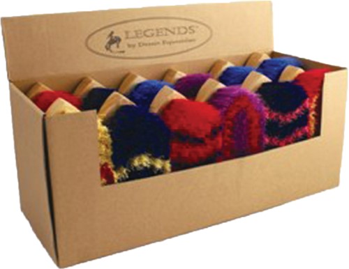From the Legends Series this brush is made with a kiln-dried, double-lacquered, curved-back hardwood brush block with colored polypropylene fibers. The brush head is about 6 3/8 long and the shape lends itself to easy handling. Since it is a little shorter than the standard brush head, it fits into pockets and small hands easier, too. There is a random assortment of colors and patterns with no color choice available. The patterns are Race Track, Zebra Stripe or Bulls Eye. The possible color combinations are Chinese Red & Cream, Royal Blue & Cream, Porcelain Blue & Cream, and Cream & Chinese Red. The crimped, medium soft poly fibers measure about 2 long, making it a great medium to heavy general-purpose grooming brush. Color:Assorted Size:6 3/8″.