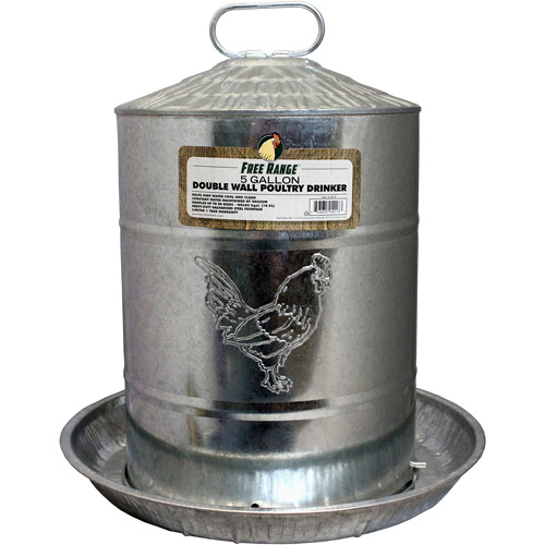 At Manna Pro we believe in Nurturing Life. Since 1985 with roots dating back to 1842 Manna Pro has been committed to providing high-quality nutritionally wholesome feeds supplements and treats to your flock at every stage of their lives. As a company comprised of animal lovers we understand the desire to provide your flock with the very best. Our passion is happy healthy pets and we are your trusted partner to provide just that. Manna Pro Harris Farms Double-Wall Drinker is constructed from heavy-duty steel. This 5-gallon poultry fountain assures a generous supply of cool water to promote intake for up to 80 chickens or gamebirds. Constant water level maintained in pan by vacuum so no floats to get stuck or replaced. Model features: visible locking device roost prevention top plus inner tank has brass valve with rubber sealing washer for positive shut-off.