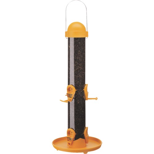 Highlights: Capacity: 1.5 lbs Height: 14″ Quick release tray Twist n’ lock removable perches This silo finch feeder is designed for thistle seed It has a yellow poly cap, feeding ports and seed catcher tray The 6 feeding ports and feeder holds more than….