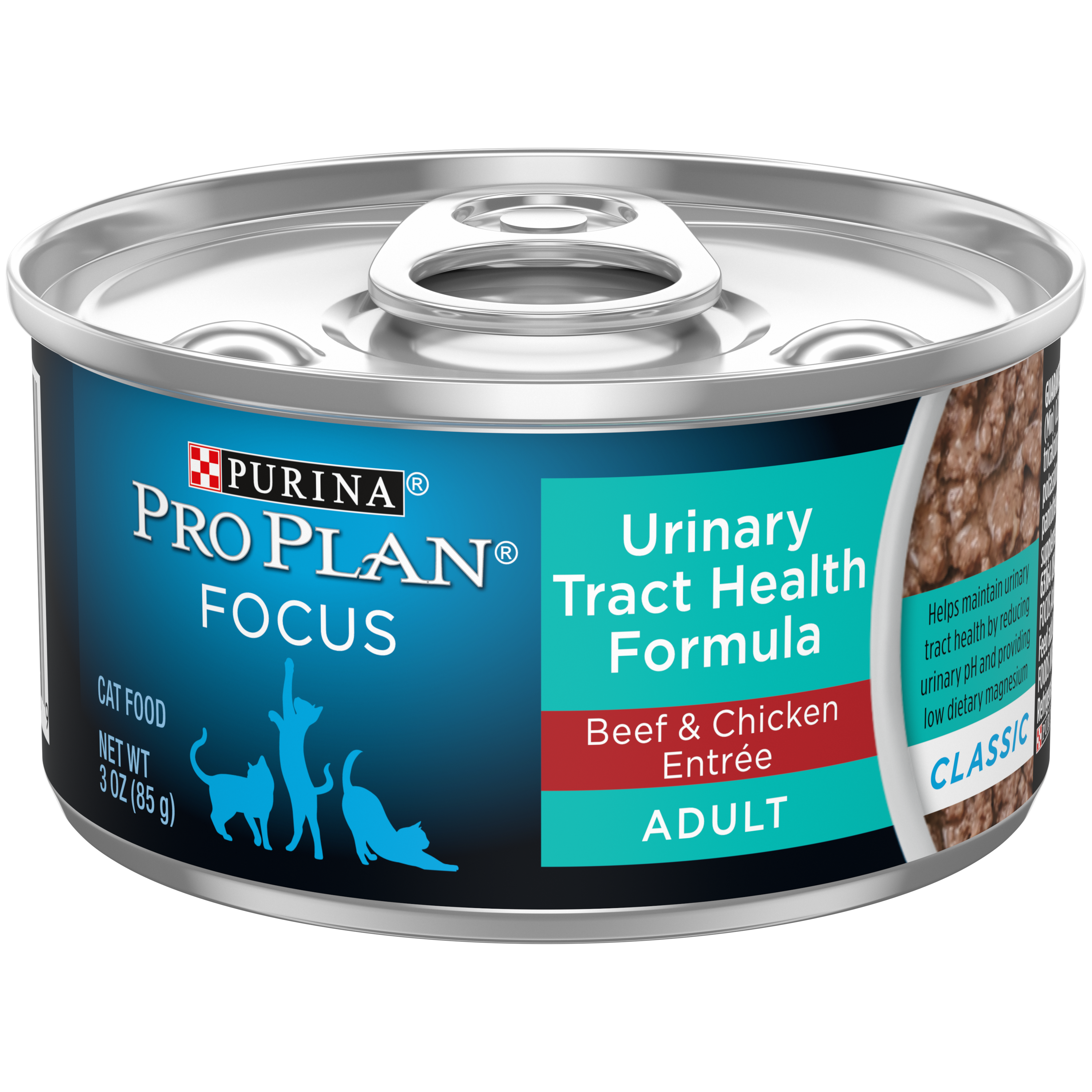 Offer your cat wet food that delivers focused nutrition to support your cat s unique needs with Purina Pro Plan Urinary Tract Health Beef and Chicken Entree Classic Cat Food. This urinary cat food recipe is developed to provide your cat with specialized care by reducing urinary pH and providing low dietary magnesium while supporting healthy hydration. This high protein Purina Pro Plan wet cat food is highly digestible to support optimal nutrient delivery and features real beef and chicken for a taste cats love. With 25 essential vitamins and minerals plus taurine an amino acid that’s vital for feline heart health this premium Purina Pro Plan cat food helps support her overall health. You’ll love the urinary health support your cat will get from this Purina Pro Plan Urinary Tract Health Beef and Chicken Entree Classic Cat Food. You’ll also love that this urinary cat food is made without any artificial preservatives and is proudly manufactured in Purina-owned facilities and that you can try it risk-free. Purina knows that you make careful decisions about the foods you serve your cat. With over 90 years of experience pushing pet nutrition forward Purina is a trusted leader in the pet nutrition industry. Each batch of Purina’s food undergoes regular checks to monitor safety and quality throughout the manufacturing process. Purina’s formulas meet or exceed industry standards. Serve Purina Pro Plan Urinary Tract Health Beef and Chicken Entree Classic Cat Food to deliver the high-quality nutrition your feline friends deserve.