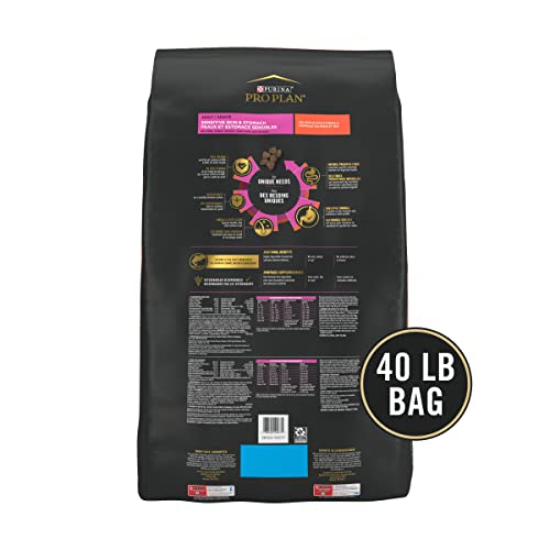 USA CLAIM FOUND ; If your canine companion has a sensitive stomach or skin Purina Pro Plan Sensitive Skin and Stomach Salmon and Rice Formula adult dry dog food is an ideal selection offering specialized nutrition for his unique needs. This sensitive stomach and skin formula with nutrient-rich dog food salmon as the first ingredient ensures that each bite packs a powerfully tasty high protein dog food flavor backed by essential adult dog food nutrition to help support your dog s skin and stomach as well as his entire well-being. Salmon is used as a high-quality source of protein and because fish oil is rich in omega-3 fatty acids it helps support your dog s joint health and mobility. We also add omega-6 fatty acids and vitamin A which help keep your dog s coat shiny and his skin healthy. Proudly manufactured at Purina-owned U.S. facilities our specialized dry dog food for sensitive skin contains nutrients that help keep your loyal companion as healthy as possible. Formulated without corn wheat or soy this dog kibble includes oat meal and rice as sources of easily digestible carbohydrates for your dog. Our SPECIALIZED platform offers multiple products to support your dog as his nutritional needs change as well as to nourish new dogs you add to your family with unique needs of their own. Each Purina Pro Plan specialized formula is backed by over 90 years of research and we only use high-quality ingredients to create a dog food that your dog loves to eat and that you can feel good about feeding him. Whether you are trying to meet the needs of a toy large breed a dog who needs to lose weight or a dog with a sensitive stomach there is a specialized formula for you to feed him confidently. Give your dog the specialized nutrition he needs and the great taste he craves with Purina Pro Plan Specialized dog food.