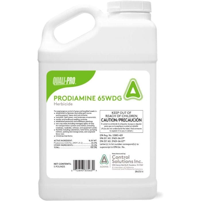 Specification Reviews Tags Control Solutions Inc. Part#: Quali-Pro 072693335639 – Quali-Pro Prodiamine 65 WDG (Generic Barricade 65 WDG) (5 lbs) – Pre-Emergent Herbicide Quali-Pro’s Prodiamine 65 WDG provides pre-emergent grass and broadleaf weed control. Flexible application allows for both spring and fall use providing season long crabgrass control. Available in a 5 pound bottle.