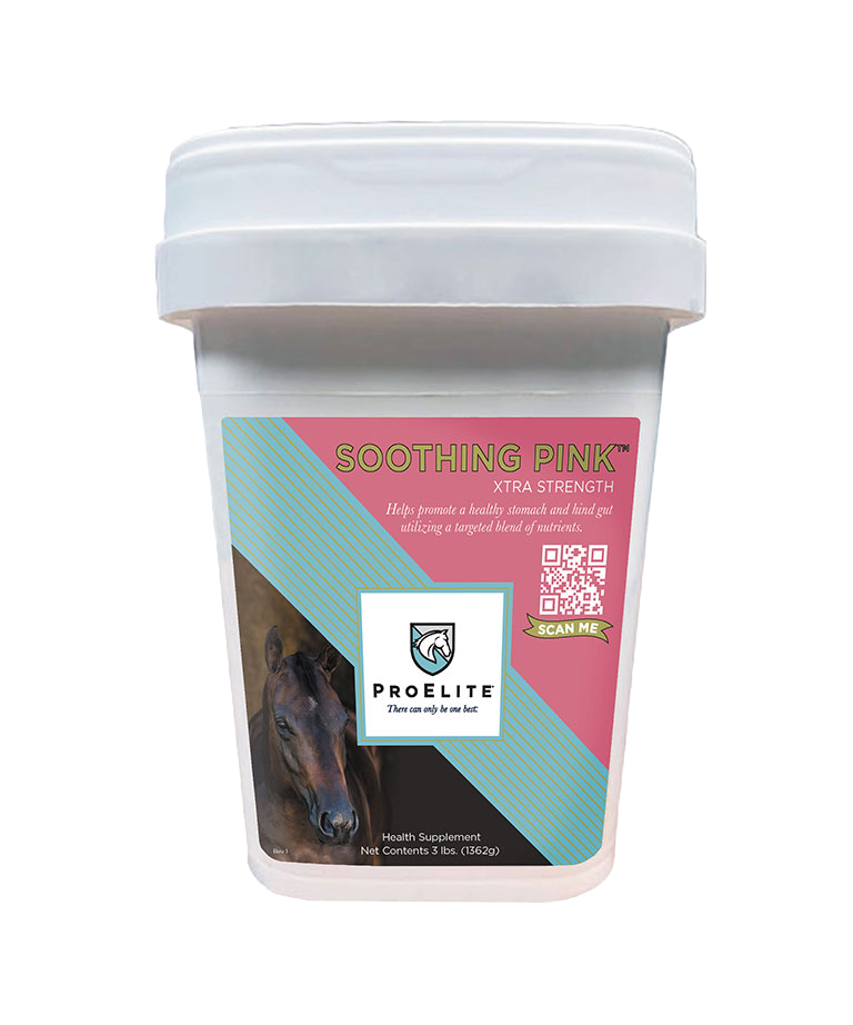 Soothing Pink Xtra Strength is a digestive supplement for horses in a 3 lb tub made by ProElite. It helps promote a healthy stomach and hindgut.