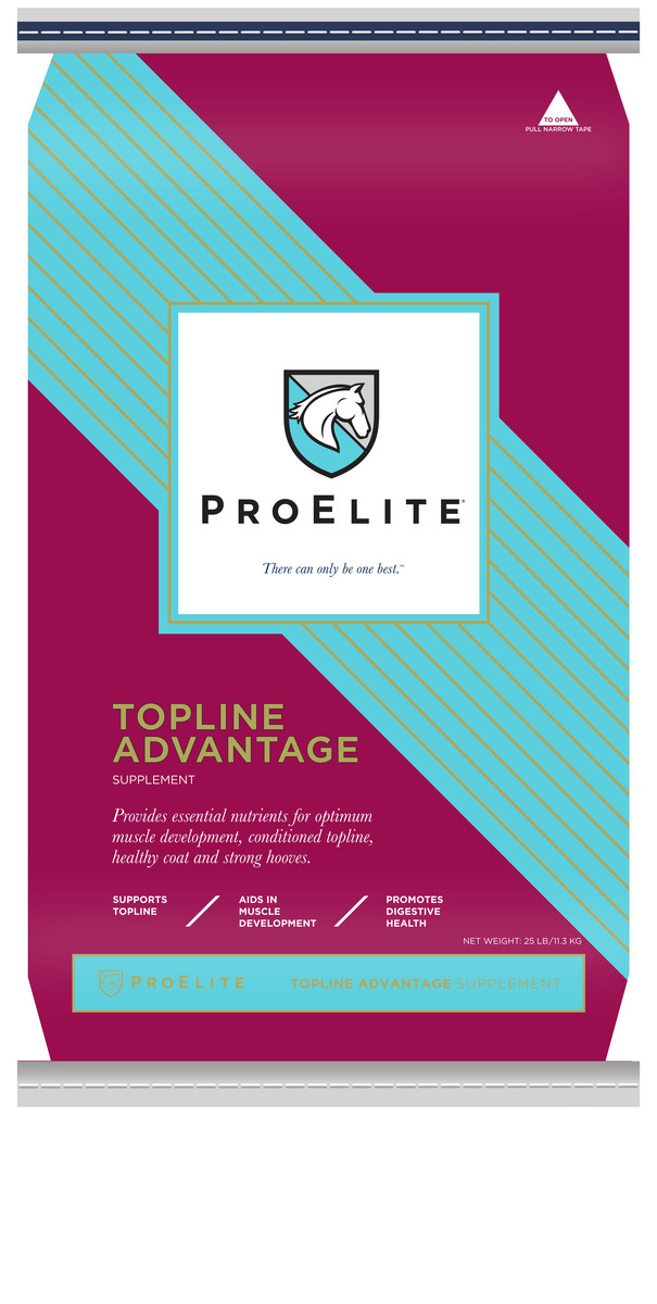 ProElite Topline Advantage Supplement provides essential nutrients for optimum muscle development. These nutrients also aid in a conditioned topline, healthy coat, and strong hooves.