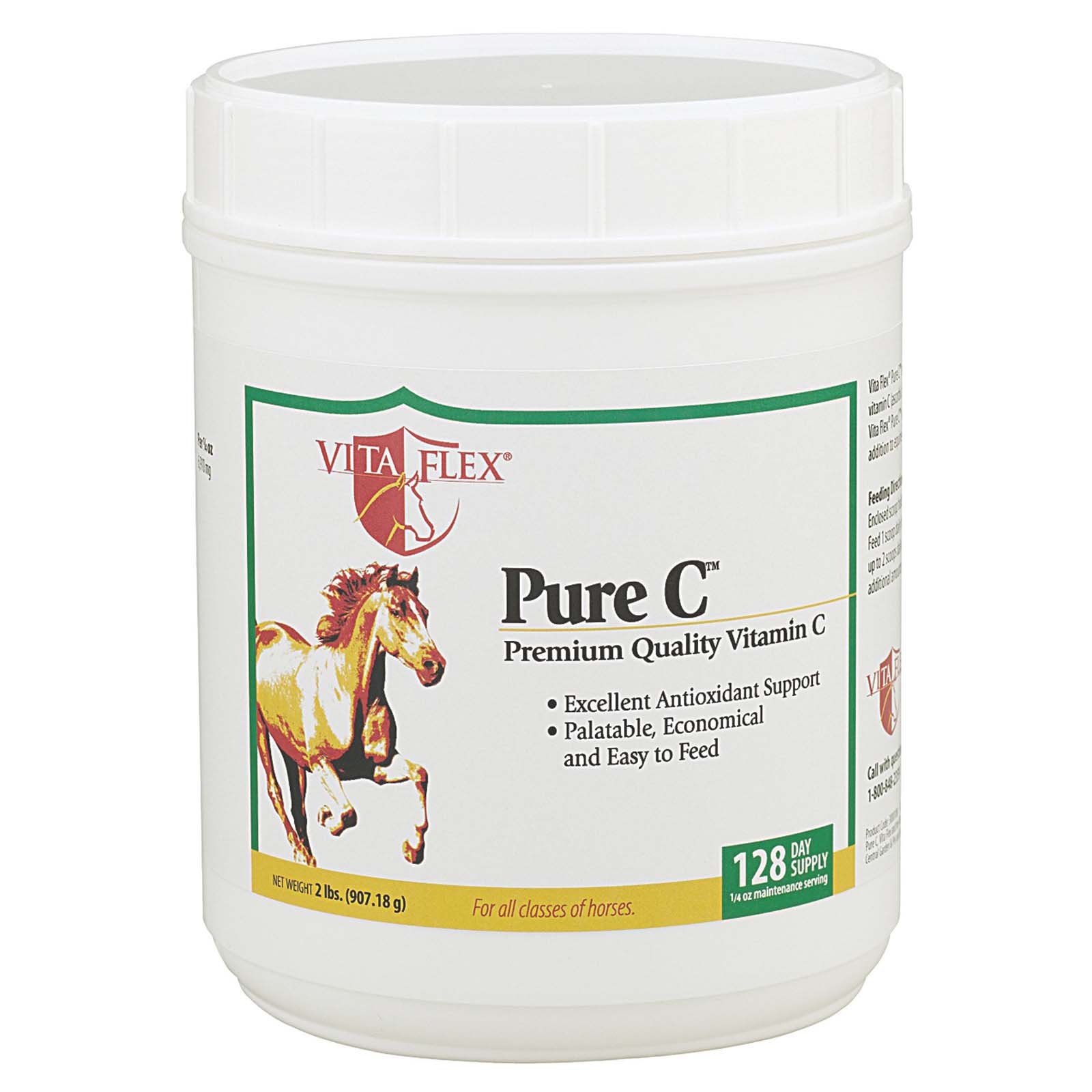 Vita-FlexPure C contains only absolutely pure vitamin C (ascorbic acid). No fillers of any kind have been added. Pure C is not only the purest available form of vitamin C, its also your best value. Vita-Flex Pure C is a useful, highly palatable addition to equine feeding programs. Enclosed scoop holds 1/4 ounce. Feed 1 scoop daily for maintenance. During periods of stress, feed up to 2 scoops daily. Increase feeding of large breeds proportionately according to body weight in excess of 1,000 pounds. Severely stressed horses may benefit from additional amounts. Keep cool and dry. Reseal after each use.