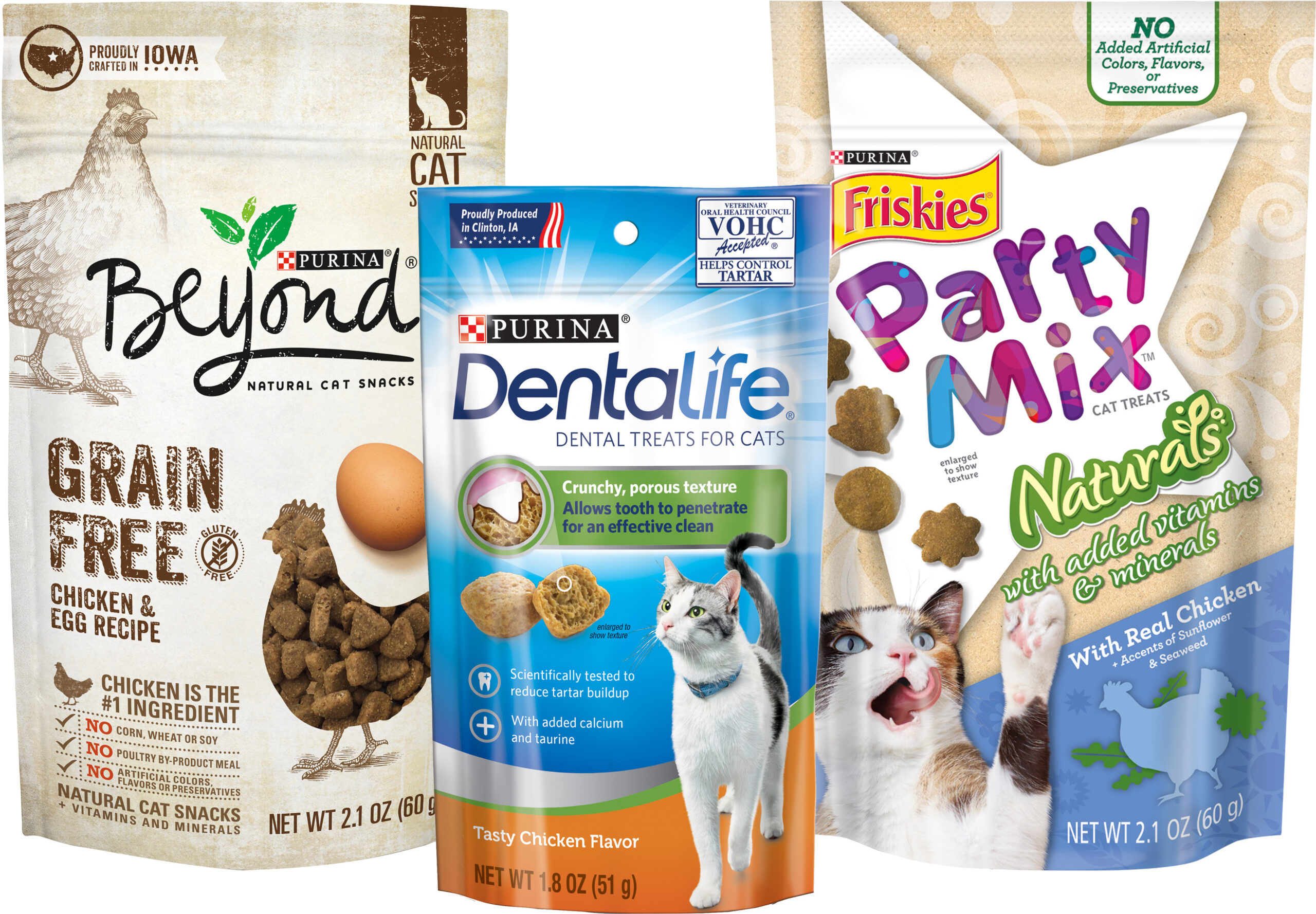 Make caring for your cat s oral health a priority when you serve up Purina DentaLife Tasty Chicken Flavor adult cat dental treats. Scientifically designed to help your cat s teeth penetrate each treat they help deliver a breakthrough clean and their unique texture surrounds all sides of the tooth helping to reduce tartar buildup more effectively. Each delicious dental treat contains added calcium and taurine so you can feel good about offering these healthy cat snacks to your cat companion. She s sure to love the delicious chicken flavor and the crave-worthy crunchy texture and you can rest easy knowing she s getting the oral care she needs to help keep her teeth and gums healthy. Don t wonder if you ve found a quality treat for your cat We covered that so you can spend more precious time with your feline friend. Give her mouthwatering Purina DentaLife adult cat treats in addition to her complete and balanced daily diet and watch your cat show off her smile every day.
