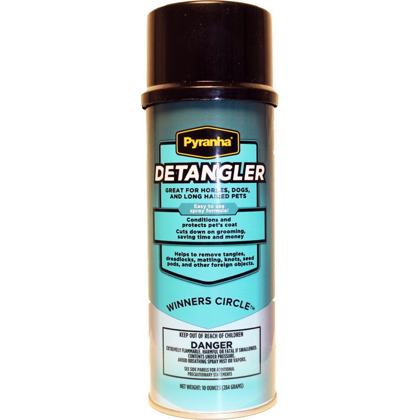 Pyranha Aerosol Detangler is approved for use on horses and dogs. Features: Conditions, detangles and moisturizes hair; Leaves hair manageable with a soft silky finish; Light fresh scent; Repels dust and dirt Size:10 oz.