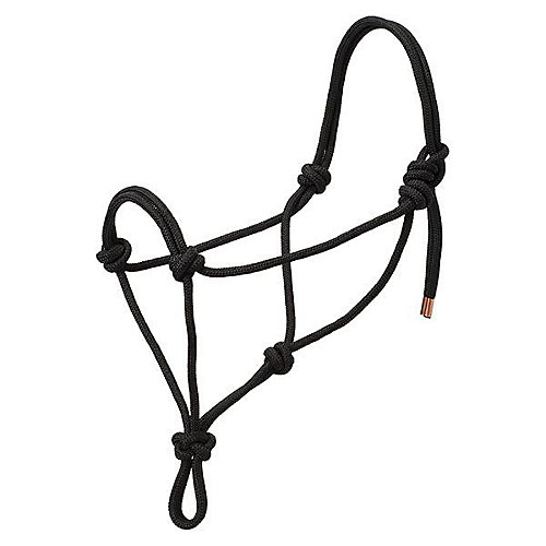Economy rope halter is hand-knotted from a continuous piece of 3/8″ poly rope with a double noseband and crown strap. Features: . Hand knotted from a continuous piece of rope Features a double noseband and crown strap 3/8″ poly rope construction .