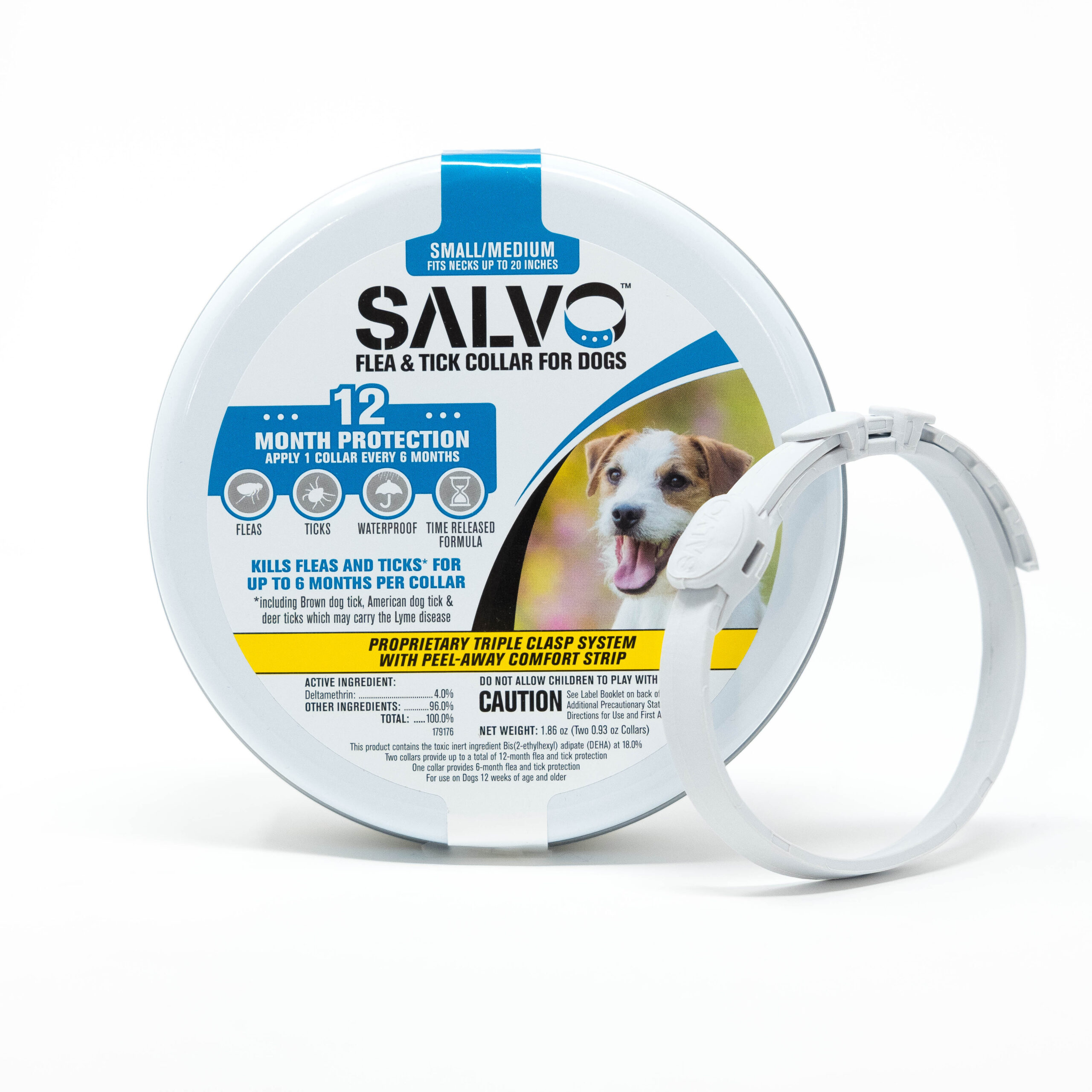 Flea & tick collar quickly and effectively protects dogs from fleas and ticks for 6 months. Fleas on the dog are killed and fleas in the dogs environment that may appear on your pet will be killed. Also kills ticks, including brown dog tick, american dog tick and deer ticks which may carry lyme disease. The odorless salvo collar is specially formulated using insecticide release technology. Which works with the natural oils in dogs skin to distributethe active ingredients over the dogs body. Waterproof also. Collar should be worn continuously. Reapply new collar every 6 months.