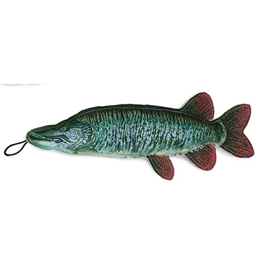 Denim Muskie has a realistic print and durable body with rope inside. It includes a squeaker, but no stuffing for less of a mess. Denim Fish have a Tough Chew-o-Meter rating.Find the SQUEAK DOG TOY MUSKIE at Ace.