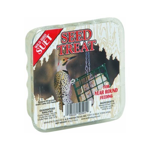 High energy seed and suet treat for year round feeding. Will attract woodpeckers Nuthatches Titmice and chickadees. Use in standard suet basket feeder. Made in the use.