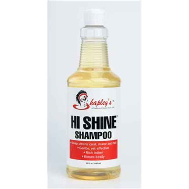 Shapleys Hi Shine Shampoo.The Shapleys Hi Shine Shampoo is designed to gently deep clean your horses hair.The Shapleys Hi Shine Shampoo produces a rich,foamy lather that rinses out easily without leaving any residue.Hi Shine will leave the coat, mane and tail squeaky clean, shiny and manageable. It is gentle enough to be used every day.Hi Shine is specially formulated to cut through oil and will easily and effectively.Hi Shine can be applied directly to wet coat or diluted in a bucket of water and applied with a sponge.
