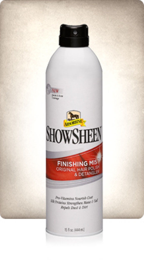 Celebrated worldwide as the best-selling hair polish in over 25 countries, ShowSheen is now available as a Finishing Mist. Perfect for last-minute touch-ups, ShowSheen Finishing Mist has a continuous, quiet sprayer that won’t spook your horse and even sprays upside down. Continuous sprayer for uniform and complete coverage; Original ShowSheen is now enriched with Pro Vitamins and Silk Proteins to shine and strengthen better than ever; Pro Vitamins nourish coat for a world class shine; Silk Proteins strengthen mane and tail hair for a more beautiful appearance; Repels dust and dirt to save grooming time; ShowSheen is the best selling hair polish in over 25 countries around the world; Fresh scents of Jasmine and Sandalwood pamper your horse; Size:15 oz.