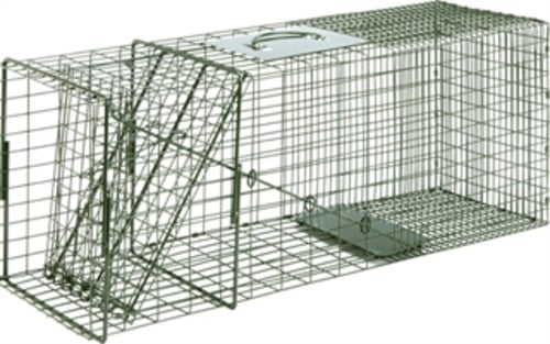 Duke Standard Series Cage Traps are available in three sizes and are excellent for use in removing nuisance animals. These cage traps employ an internal door system and a wire mesh pan. The 10 x12 x32 model is recommended for use in trapping raccoons opossums feral cats and other similarly sized animals and has a durable green finish.