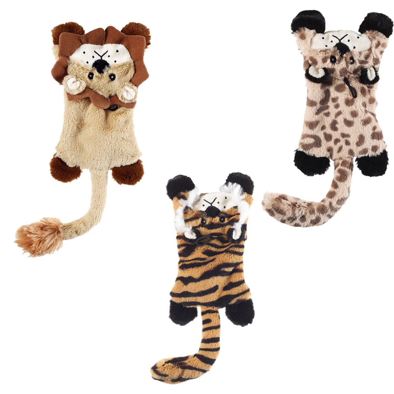 Smaller size stuffing-free Skinneeez is perfect for small/medium dogs. Includes a squeaker and comes in three assorted characters.
