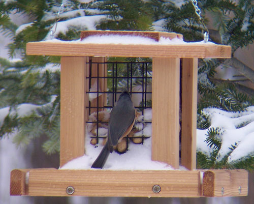 Stovall products feature all cedar construction stainless steel and dichromate plated screws washers hooks and chains hand sanded assembled with screws many products coated with wood protector which accents the wood grain and the natural warmth of cedar. Peanut in the shell feeder when we want excitement at the feeding area fill up and watch blue jays go crazy between the nut hatches titmice and re-bellies chickadees and of course the squirrels. Wood smaller whole peanut feeder. Material: wood. Dimension: 13.5in. x 11.5in. x 11in. 1 in coated steel mesh. Environmentally green practices hand sorted down graded lumber. The Shop is heated with scrap wood cooled with natural shade and insulation nestled in a glen among 25+ acres of beech/maple/oak forest. Rumored staffing of woodland gnomes with a payroll of nuts and berries is still not factual.
