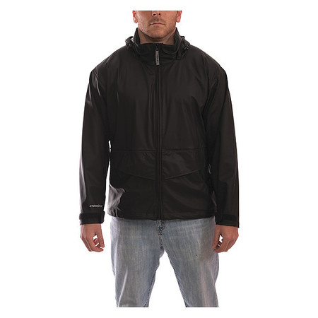 Rain Jacket Garment Type Rain Jacket Style Rain Jacket Size L Number of Inside Pockets 0 Number of Outside Pockets 2 Color Black Front Closure Type Zipper Gender Unisex Material Polyester/Polyurethane High-Visibility No ANSI Class Not Rated Insulated for Cold Conditions No Back Stripe Pattern None Includes Hood Yes Hood Style Packable Hood in Collar Length 31 in Length Type Hip Includes Removable Liner No Includes Lining No Maximum Chest Size 52 in.