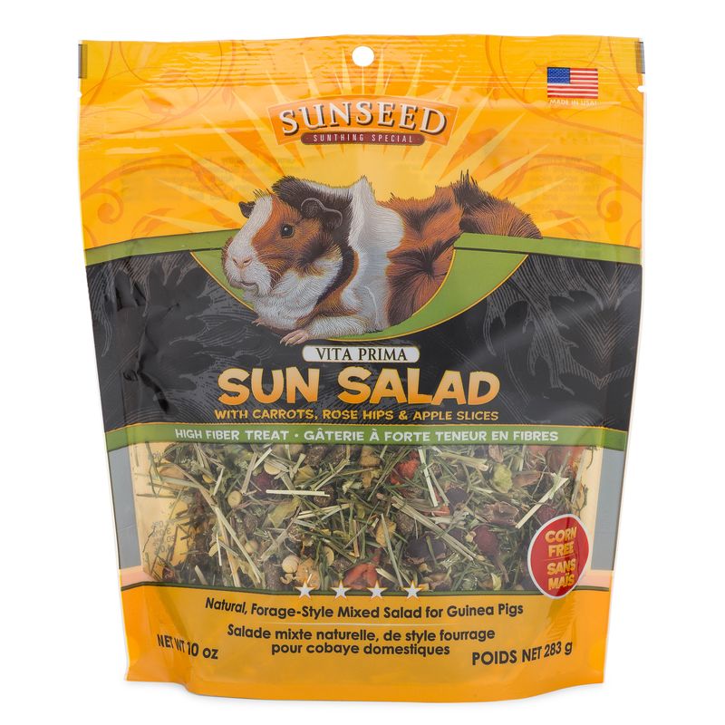 Prepare to hear all the “wheeks!” when you treat your guinea pig to Sunseed Vita Prima Sun Salad, a naturally colorful and delicious foraging treat. This nutritious mixed salad blend is made with high-fiber Timothy hay and features many of your companion’s favorite herbs and veggies, including parsley, carrot, rose hips, and celery.