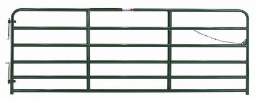 Gate is designed for feedlots, large herd containment and heavy confinement situations. Vertical Z-braces and 2″ diameter round high-tensile strength steel tubing with continuous-welded saddle joints. A superior powder coat over E-Coat finish ensures longer life in the field. Gates come with (2) 3/4″ x 12″ hinge pins and heavy-duty welded chain latch.