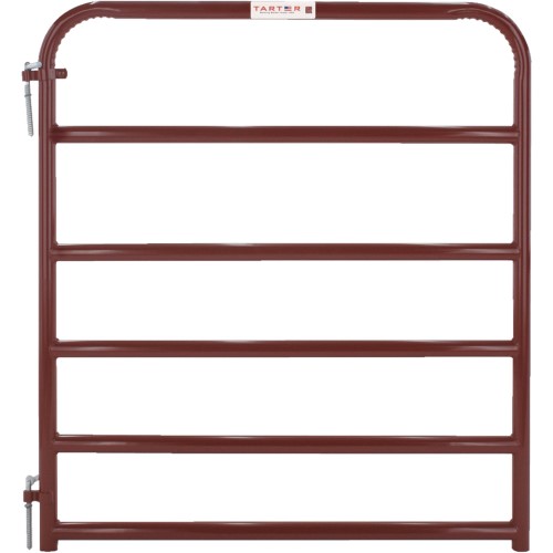 The ideal gate between pastures and entries. Made from 1-3/4 inch round high-tensile strength tubing with superior continuous welded saddle joints. 50 inches high with vertical Z-braces. Features a superior E-Coat finish to ensure longer life in the field. Gate comes with hinges, hinge pins, and 22 inch snap chain. 19-gauge. Color: Red.