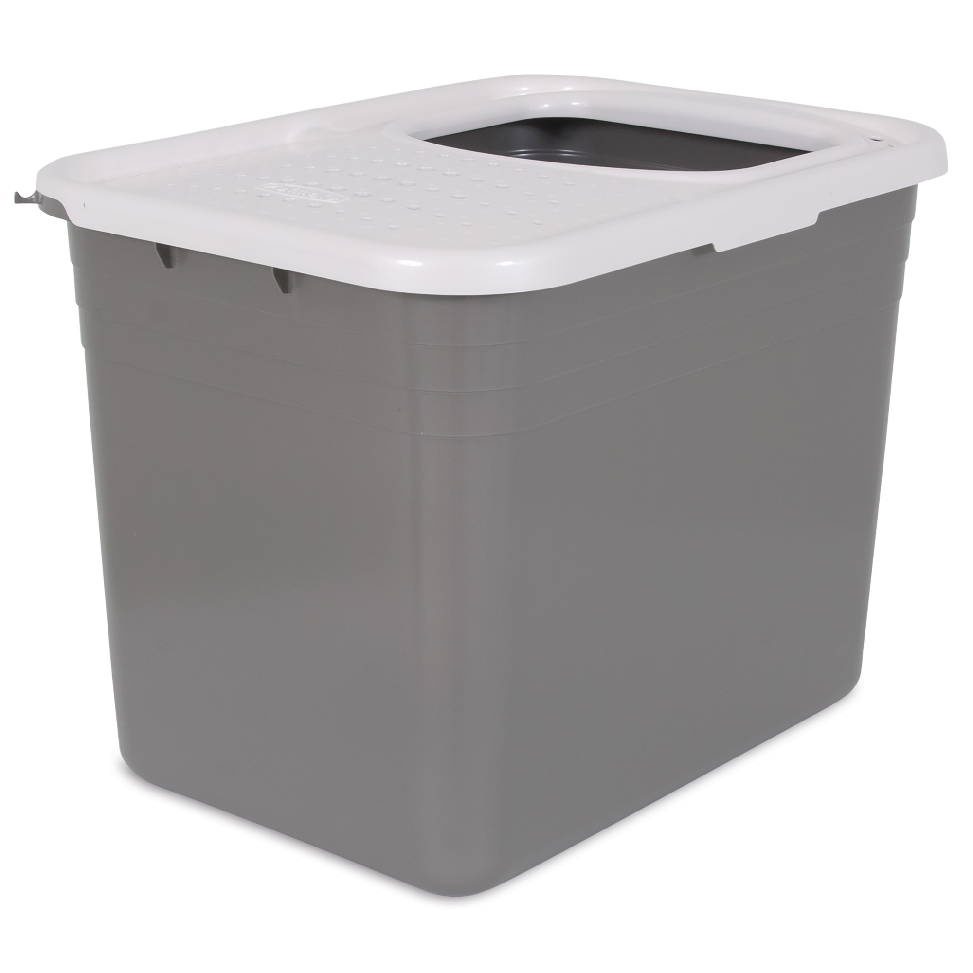 TOP ENTRY LITTER PAN Hinged lid for easy cleaning Lid funnels litter scatter back into pan Generous entry for all sizes of cats Unique shape helps deter dogs from digging in litter Made in the usa; UPC : 029695220623 Color : NICKEL/PEARL Size : 20 X 15 X 15 Length : 20.29 Width : 15.07 Height : 15.2 Product Type : Cat – Litter Accessories / Pans Shipping Dimensions: 20.29×15.07×15.2.