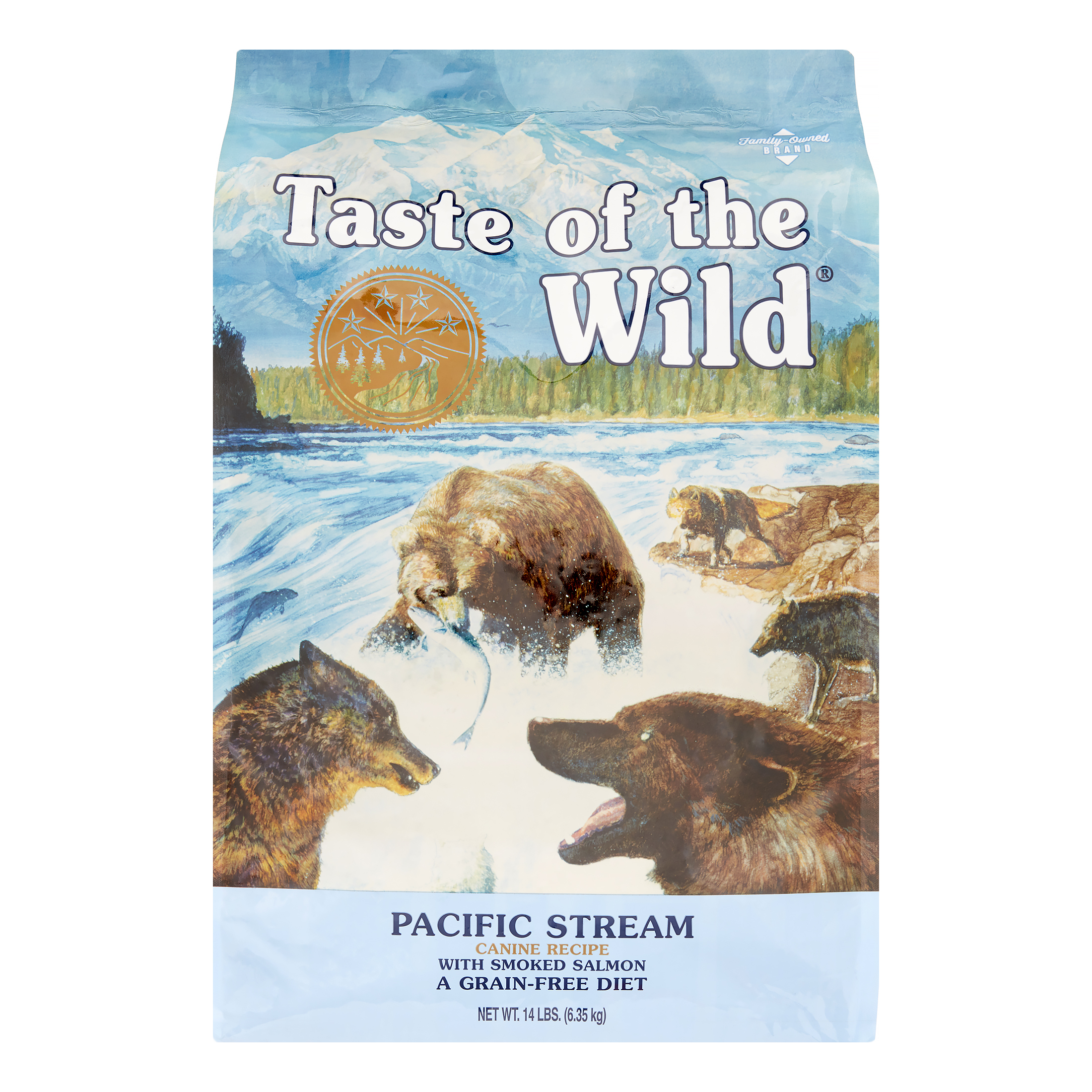 Taste of the Wild Pacific Stream delivers a lean protein, antioxidant rich, dry dog food for all life stages and all sizes. A fish protein, grain-free formula with sweet potatoes provides highly digestible energy for your sensitive dog. Taste of the Wild Pacific Steam is made with real smoked salmon, ensuring this formula offers a taste sensation like no other. Supplemented with vegetables and fruits, this fish and potato formula delivers antioxidants to help give your friend a healthy lifestyle. Your dog craves tastes from their wild past. Go ahead and give them one.