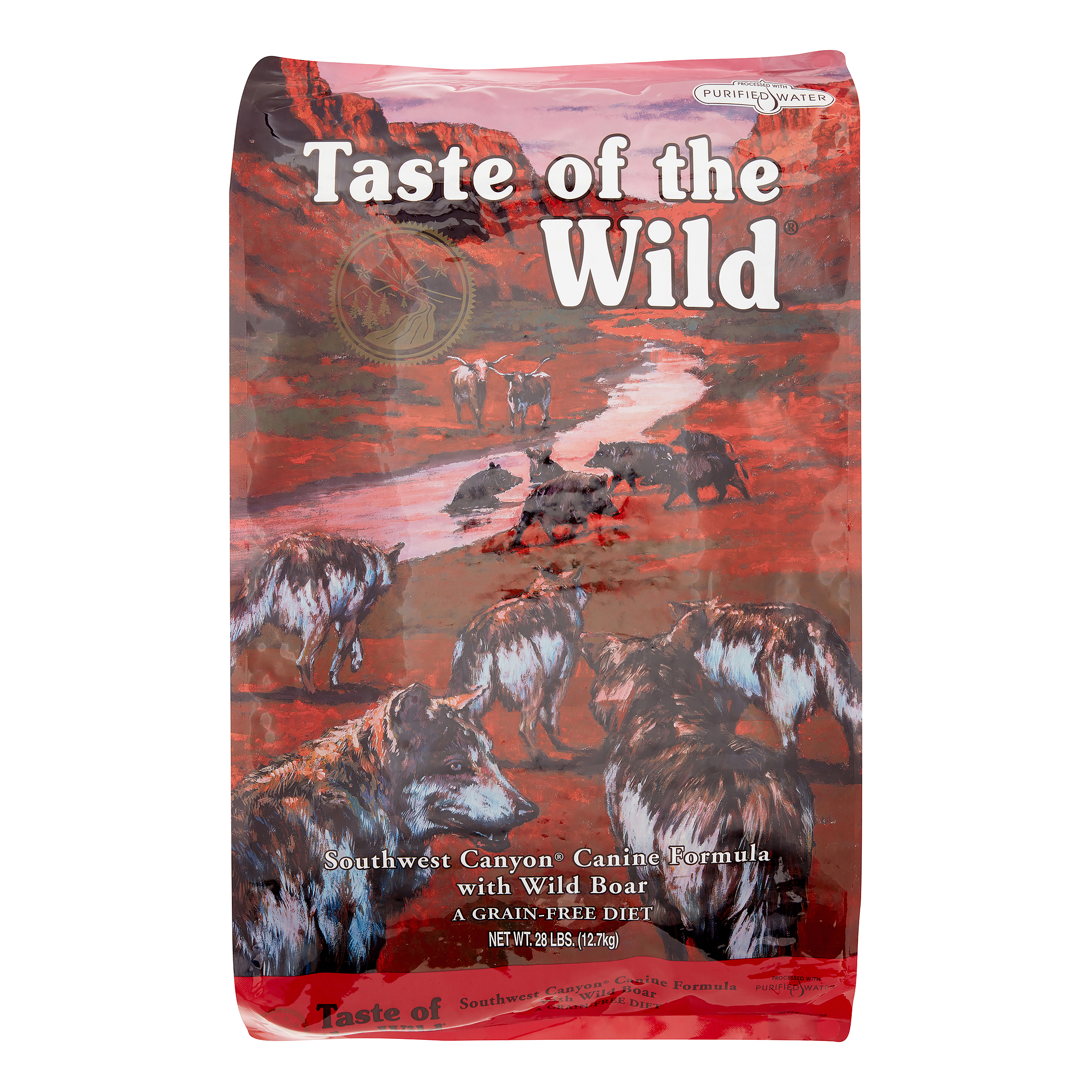 Taste of the Wild Southwest Canyon provides dogs at all life stages and sizes an essential antioxidant rich, zero grain dog food diet. This unique formula contains a blend of animal protein sources, including wild boar, for a taste sensation that your pet will love. In addition, nutrient-rich legumes and fruits like peas, garbanzo beans, blueberries and raspberries provide antioxidants for your pet’s healthy lifestyle. Your dog craves tastes from their wild past. Go ahead and give them one with Taste of the Wild Southwest Canyon Wild Boar Recipe.