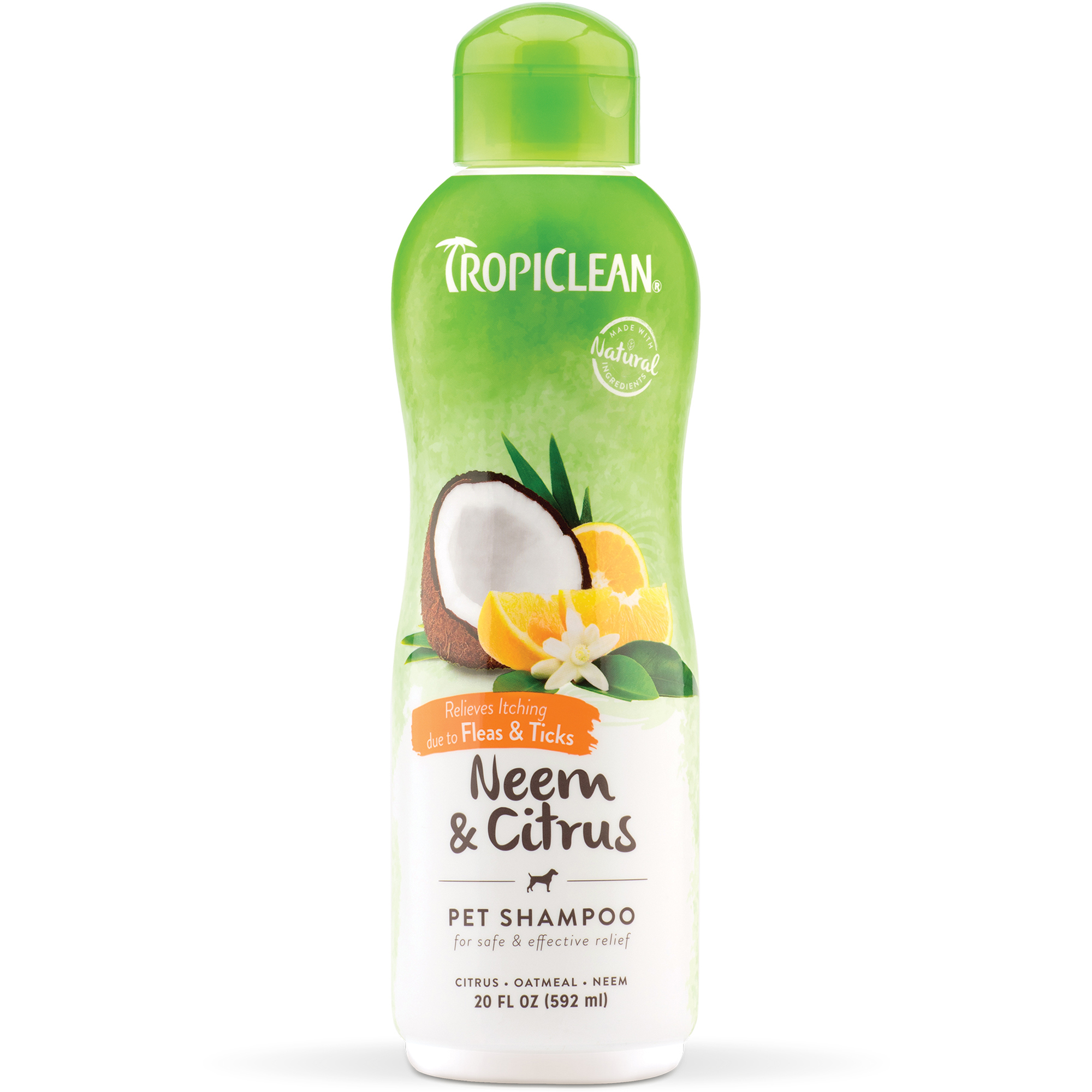 TropiClean Neem & Citrus Flea & Tick Relief Dog Shampoo provides soothing relief from flea and tick irritations while effectively degreasing extremely dirty dogs. Removes tough stains without stripping your dog’s skin and coat of its natural oils leaving their coat soft and clean. The calming citrus aroma leaves them smelling fresh and ready for cuddles! TropiClean Pet Products are cruelty free.