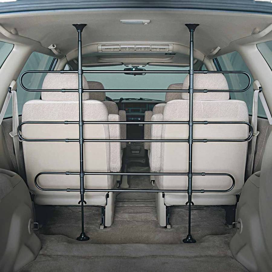 Keeps pet to rear of vehicle safely away from driver & passengers.Unique tubular design allows for horizontal and vertical adjustments as well as eliminates blind spots.Soft brace pads protect interior.Size: Adjusts: 34 To 65 Wide 30 To 55 High Model 11: 6 Bar Tubular Pet Barrier Finish: Black Electro-Coat Material: 1/2 Tube Weight: 11 Lbs.Dimensions (L x W x H):39.5 x 4.5 x 5.5- SKU: BCI04172.
