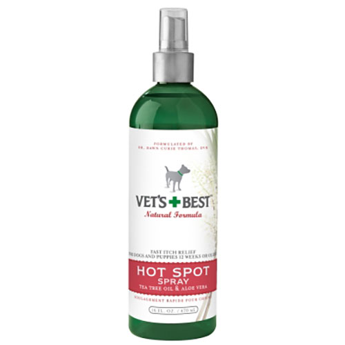 Vets Best Hot Spot Spray provides a welcome relief for your dog s itchy dry and irritated skin. Our veterinarian-formulated and recommended blend of natural key ingredients including tea tree oil aloe vera and chamomile provides fast relief for your dogs itching and scratching. The alcohol-free no-sting formula is a soothing solution for hot spots as well as seasonal allergies and environmental irritants.