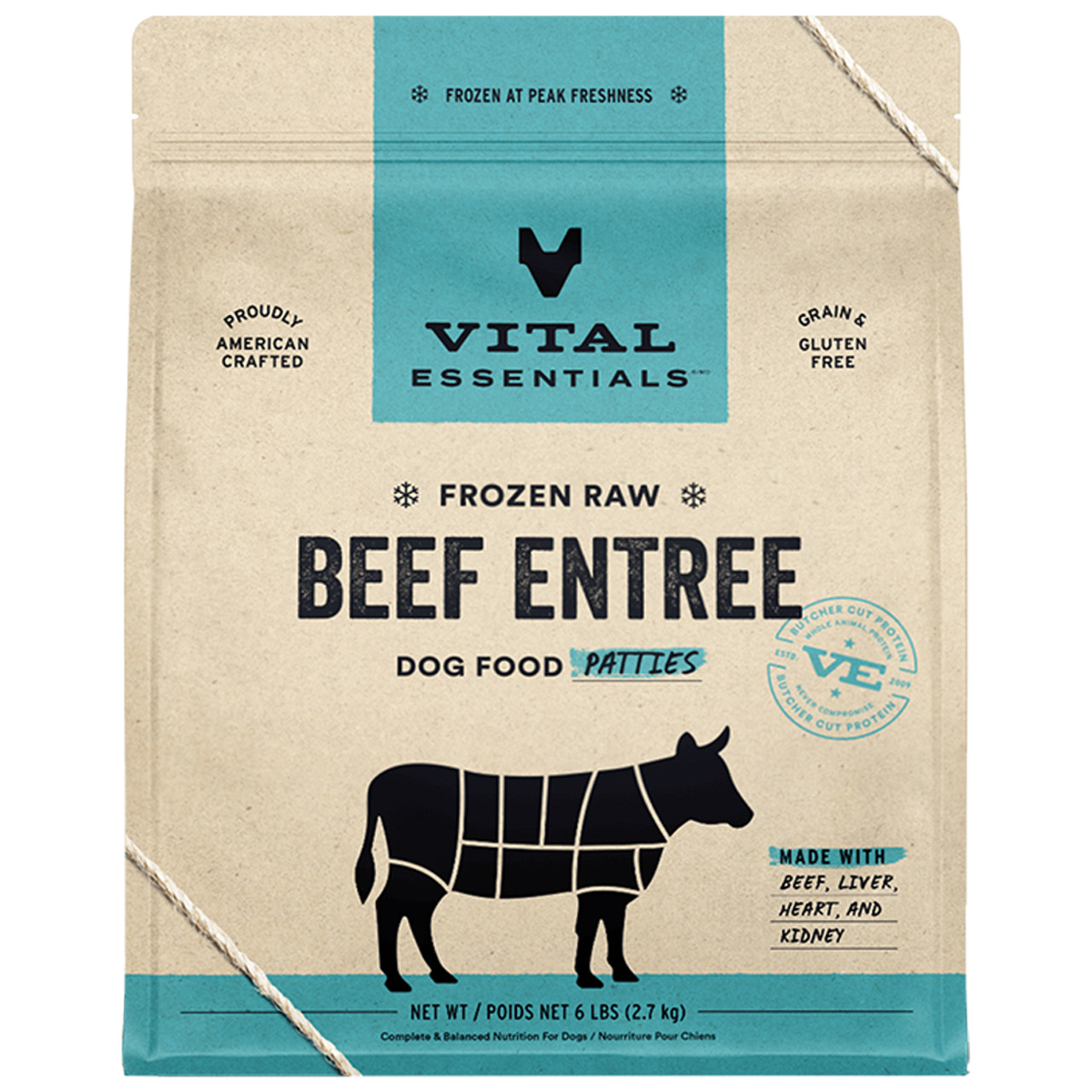 VE DOG FROZEN PATTIES BEEF 6#