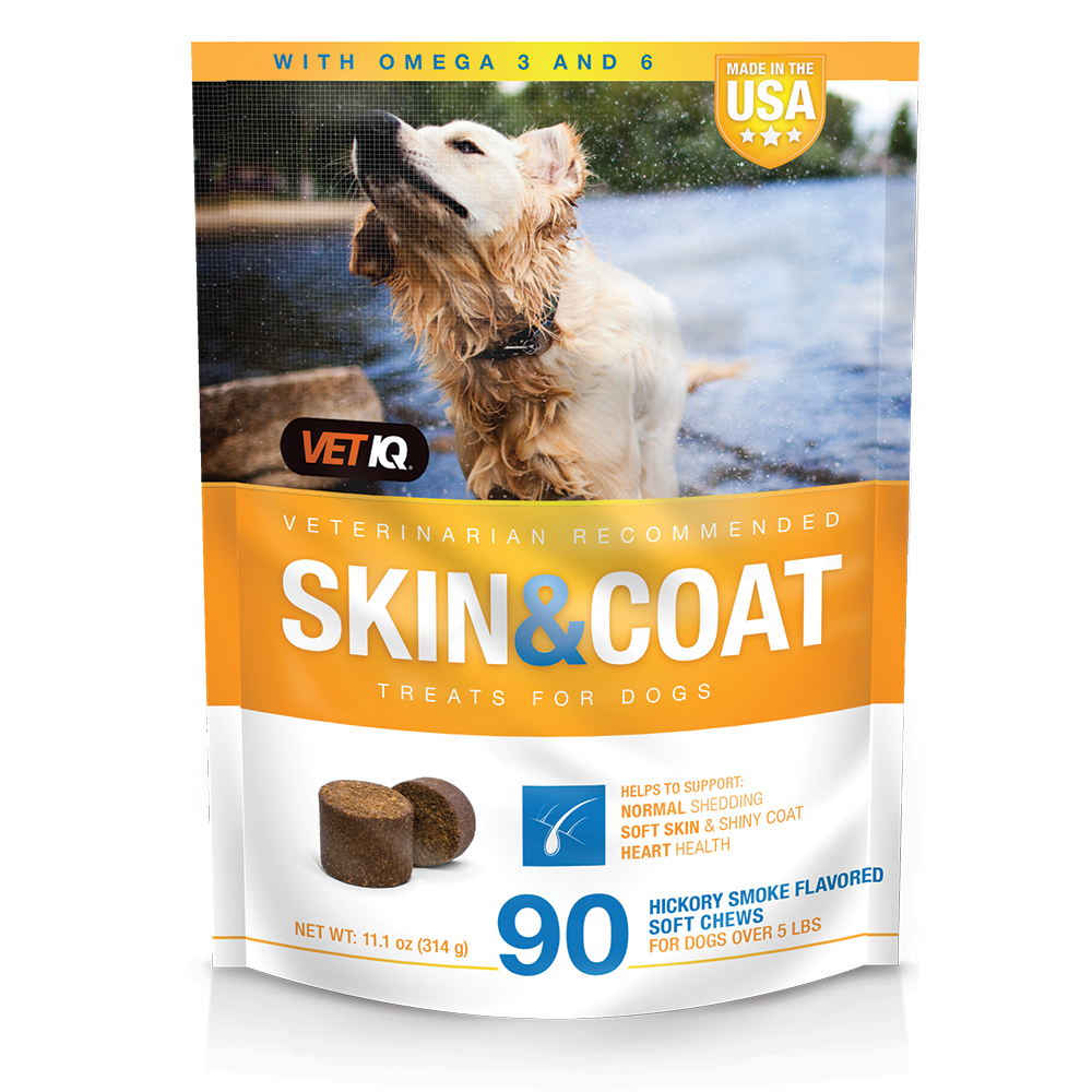 VeTIQ skin & coat supplement for dogs 90 soft chews are made with fatty acids to help promote a healthy coat and soft skin that dogs require to live comfortably. VeTIQ provides quality medication and supplements for your pet at prices you can afford. We desire to provide the best information possible so that you can make informed decisions for your pet. In developing best-in-class products veTIQ uses state-of-the-art research facilities and technologies. In addition to our current products featured throughout this website new pet healthcare products are currently under development. As part of our commitment in providing vet recommended products for your pet we source ingredients and manufacture veTIQ products right here in america. This allows us to confidently stand behind the quality of each product. VeTIQ is committed to the highest standards of product quality and safety at our manufacturing sites. We cooperate with technical and regulatory authorities in every stage of the production process and require strict adherence to health safety quality control environmental protection and regulatory compliance procedures.