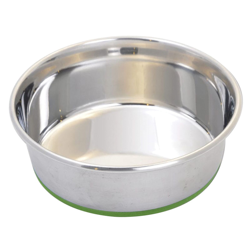 Ideally sized for large sized dogs with a 96-ounce capacity. Made with 6 gage durable polished stainless steel. Skid-proof bonded rubber on the bottom.