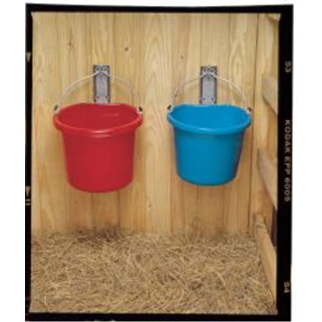 Patented aluminum bracket specially designed to hold flat back buckets securely against a wall or post, indoors or outdoors. Bail pin locks bucket in tip-free position. Ingredients: Patented Aluminum Bracket. .