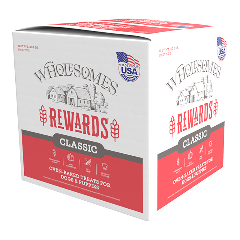 Rewards Originals oven-baked biscuits are proudly made in family-owned, USA kitchens. The crunchy texture helps your dog’s teeth remain clean and healthy. Each dog biscuit treat is made with high quality chicken protein, ancient grains like oatmeal for heart health, and superfoods like pumpkin and sweet potato to help support a fit lifestyle for your dog. Use these pea-free crunchy treats as a reward or training aid!