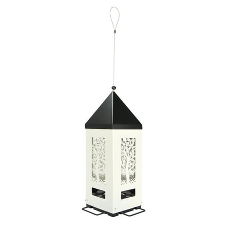 Add a touch of rustic charm to your backyard birding experience while keeping the squirrels at bay with the Squirrel Shield Lantern Feeder. This bird feeder features a 2 quart seed capacity for less frequent filling intricate detailed viewing windows for monitoring seed levels and a slide-up locking roof with wide opening for easy refilling. Weight-sensitive external collapsing seed shields blocks squirrel access to seed while collapsing perches make it harder for squirrels to gain a secure foothold on the feeder. With perches and seed ports on each side this feeder is perfect for better bird viewing.