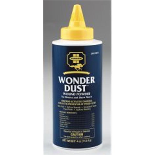 Put a quick end to bleeding with Wonder Dust Wound Powder. This winning formula stops bleeding fast & helps slow-healing sores and infected lesions dry up quickly. A Farnam classic product, Wonder Dust is a dressing powder and blood coagulant for use on wounds, cuts, abrasions and capillary bleeding. It works lighting quick and can be used with or without a bandage. Product is specially formulated for use on horses and show stock. It is a caustic and drying agent for slow healing sores, infected lesions. Wonder Dust contains activated charcoal which aids in the prevention of proud flesh. This product stops the bleeding fast, dries up wounds quickly and controls tissue granulations. Formula also has a deodorant to remove objectionable odors from foul or infected wounds. Shake well before using.Open nozzle by turning tip up. Hold nozzle 2 to 4 inches from wound. Squeeze container firmly,puffing powder freely over the entire surface of the wound. Repeat application as often as necessary.