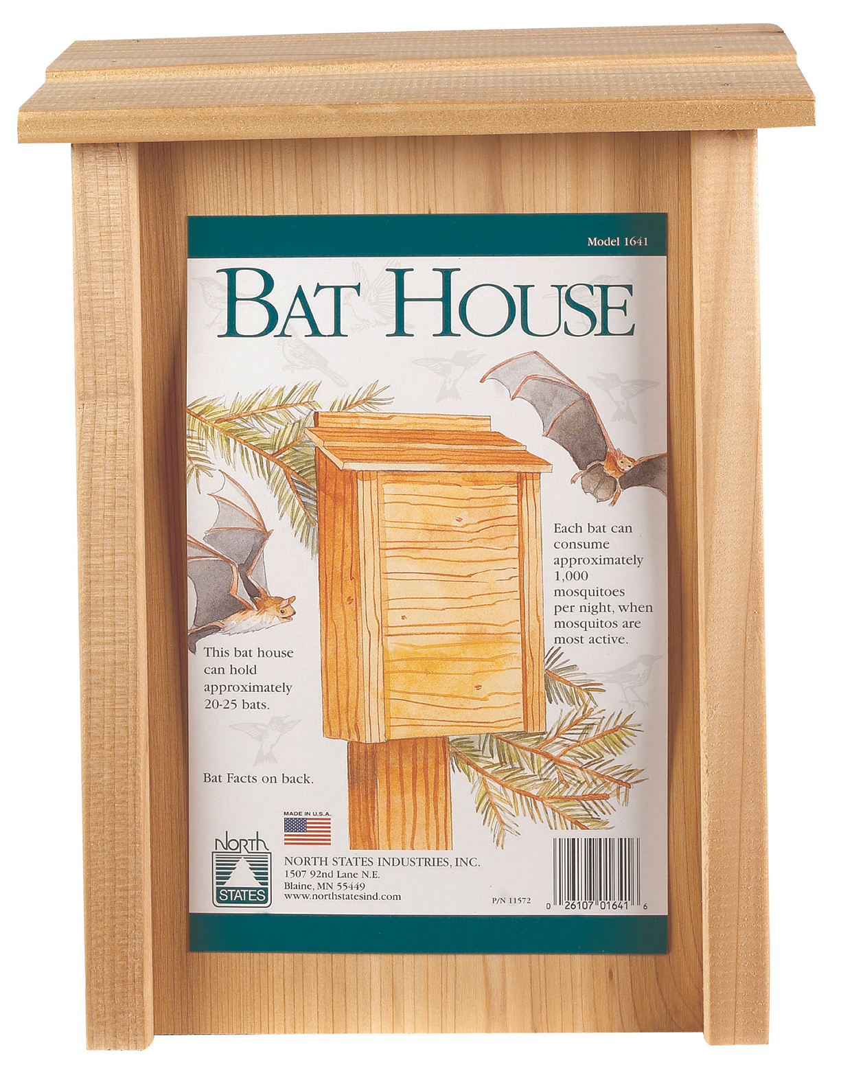 Deluxe heavy-duty wood construction. 3 compartments to accommodate approximately 20 to 25 bats. Easy-to-mount to trees, houses, posts, fences, and more. House should be placed 10 to 15 Ft. high and not have anything near the entrance to the house. Place in a southerly exposure to catch the sun and shelter from the wind. Dimensions: 8 In. W. x 15 In. H. x 4.75 In. D. Dimensions: 8 In. W. x 15 In. H. x 4.75 In. D. Material: Redwood Color: Natural Weight: 2 Lb. 4 Oz. pack of 4.