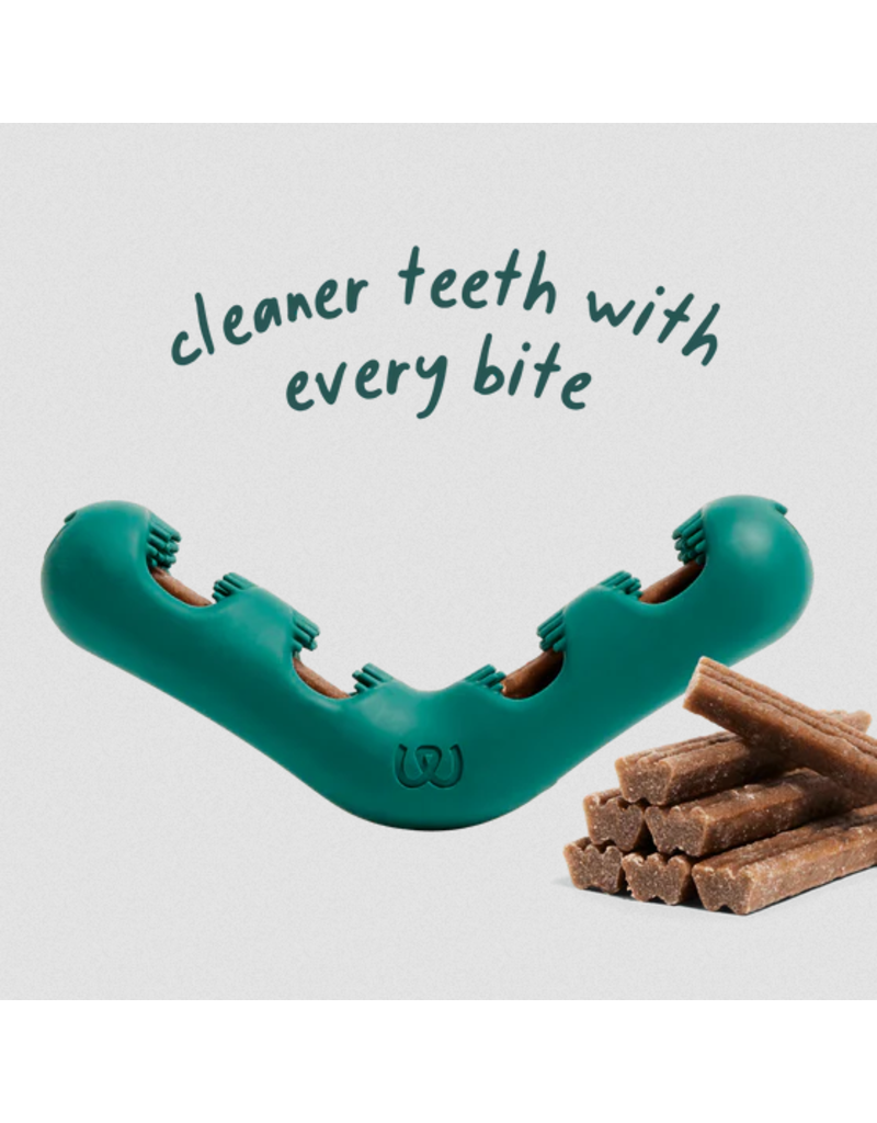 The v-shaped design of the Bite n’ Brush lets dogs brush their own teeth with special bristles sized just right to scrub plaque and tartar from all sides of the teeth and mouth. Add in a refill—packed with scientifically-backed ingredients that support oral health like peppermint, parsley, and kelp—and let your dog chew away! The Bite n’ Brush is designed to extend the time it takes to chew a dental treat, so you can get some peace and quiet and the active ingredients can get to work.