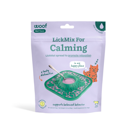 Distract and calm your pup with Woof LickMix Calming Beef Flavor Dog Treat Mix. This Jello-like spread is perfect for lick mats or as a tasty food topper for relaxation.
