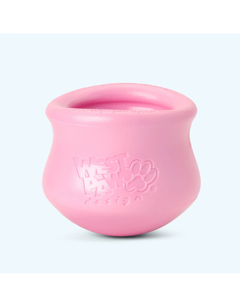 Exercise your pup’s mind with this fun and engaging interactive toy from West Paw! The Toppl Treat Toy holds your dog’s treats and gives their brain and body a workout to try to wrestle the treats out! The toy’s soft and rounded inner teeth have a contoured crevice to store treats until your dog can fish them out. For doggy geniuses, connect the small and large (sold separately) Toppl together to amp up the challenge! Made from durable non-toxic Latex and BPA-Free material. Dishwasher Safe. Made in USA. Recommended by the Pet Beastro for a doggy brain workout!