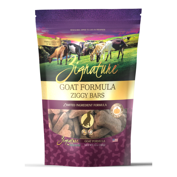 Your dog’s heart will be bleating with excitement as soon as you open his bag of Zignature Goat Formula Biscuit Dog Treats. Considered to be a very lean protein, goat has less fat than beef and less saturated fat than chicken. Great for sensitive stomachs, Ziggy Bars are single-animal sourced with high-quality goat meat from Australia. Other ingredients include pumpkin, green lentils, garbanzo beans and red lentils.