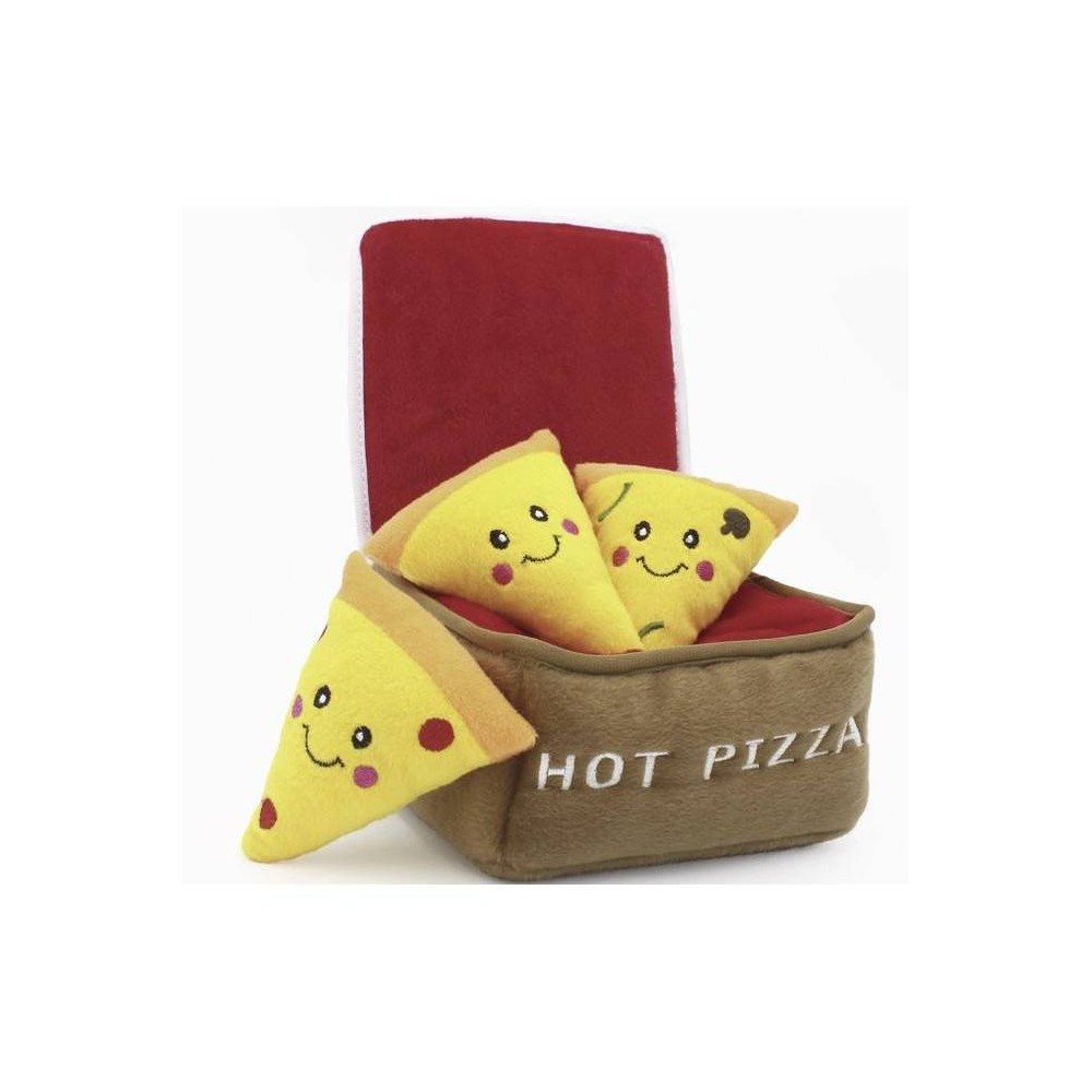 Treat your doggo to the perfect pizza party with the Zippy Burrow Pizza Box! Just stuff the Miniz Pizza slices into the box and sit back and watch as your dog excitedly digs in. Once your pup has all the squeaky slices out, they’ll be begging you to put them back in again, and again for hours of fun! Zippy Burrow toys are the perfect interactive toy for keeping your dog busy and engaged. Through hide-and-seek play, Zippy Burrow toys help prevent boredom and promote mental stimulation! This interactive toy comes with 1 Pizza Box Burrow and 3 small squeaky Miniz Pizza Slices (Cheese, Pepperoni, and Veggie). Key Features Plush pizza and pizza box with squeakers Hide-and-seek game that taps into your dog’s hunting and digging instincts Machine-washable | ZippyPaws Zippy Burrow Pizza Box Interactive Squeaker Dog Toy.